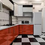 台所は,顧客向けの電子レンジ,冷蔵庫と洗濯機が備わっています.このアパ-トは[Lviv]鉄道駅の近くにあります.